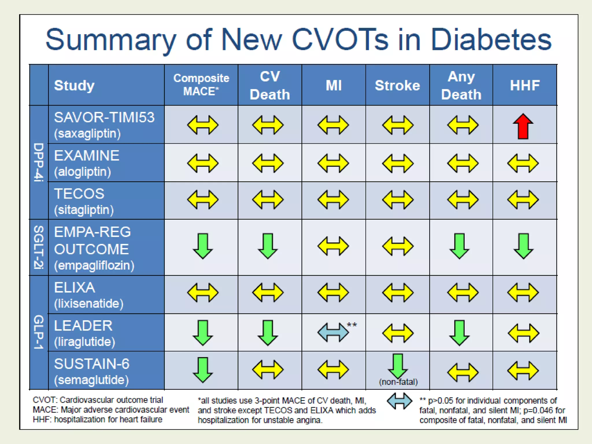  Unknown =cardiovascular outcome data is currently unavailable.  Improves Outcomes = published data demonstrates cardiovascular benefit with use in the treatment of type 2 diabetes.  Worsens Outcomes = published data demonstrates cardiovascular harm with use in the treatment of type 2 diabetes.  Neutral = published data demonstrates neither benefit nor harm in cardiovascular endpoints with use in the treatment of type 2 diabetes.