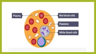 • Red blood cells, white blood cells and platelets constitute the solid part of blood.