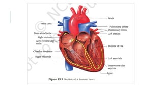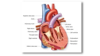 The document provides a detailed overview of the cardiovascular system, focusing on the anatomy and functions of the heart, including its structure, chambers, valves, and the processes of blood circulation and pressure regulation. It describes the heart's cardiac cycle, electrical conduction system, autonomic control of heart rate, and the significance of measuring blood pressure. Additionally, it explains the electrocardiogram (ECG) as a tool for monitoring heart activity.