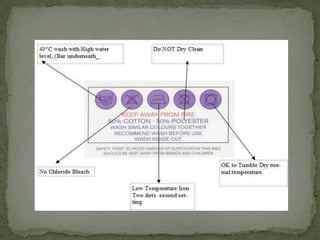 A proper care label provides full instructions for cleaning a garment using symbols specified by the HLCC and GINETEX standards. It must remain legible for the useful life of the garment and warn of any cleaning processes that could damage the garment. While care labels are voluntary, including one makes the cleaning instructions legally binding under UK law.