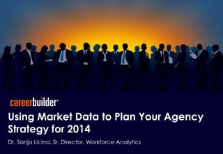 This document analyzes market data to help agencies plan their 2014 strategy. It finds that the fastest growing industries in the UK are sports/amusement, financial services support, and construction. The greatest growth is expected in Inner London, Aberdeen, and Lincolnshire. In-demand jobs include marketing/sales managers, receptionists, fitness instructors, and various leisure/sports roles. Location- and industry-specific data can help agencies identify opportunities for growth.