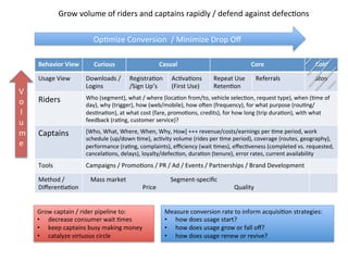 The document outlines strategies for Careem to expand its ride-sharing market presence by analyzing consumer behavior, optimizing operations, and creating targeted promotions. It emphasizes the importance of understanding rider segments, leveraging data for personalized marketing, and forming strategic partnerships to enhance user engagement and loyalty. Additionally, it suggests using social media and localized approaches to increase brand awareness and drive conversions in a competitive landscape.