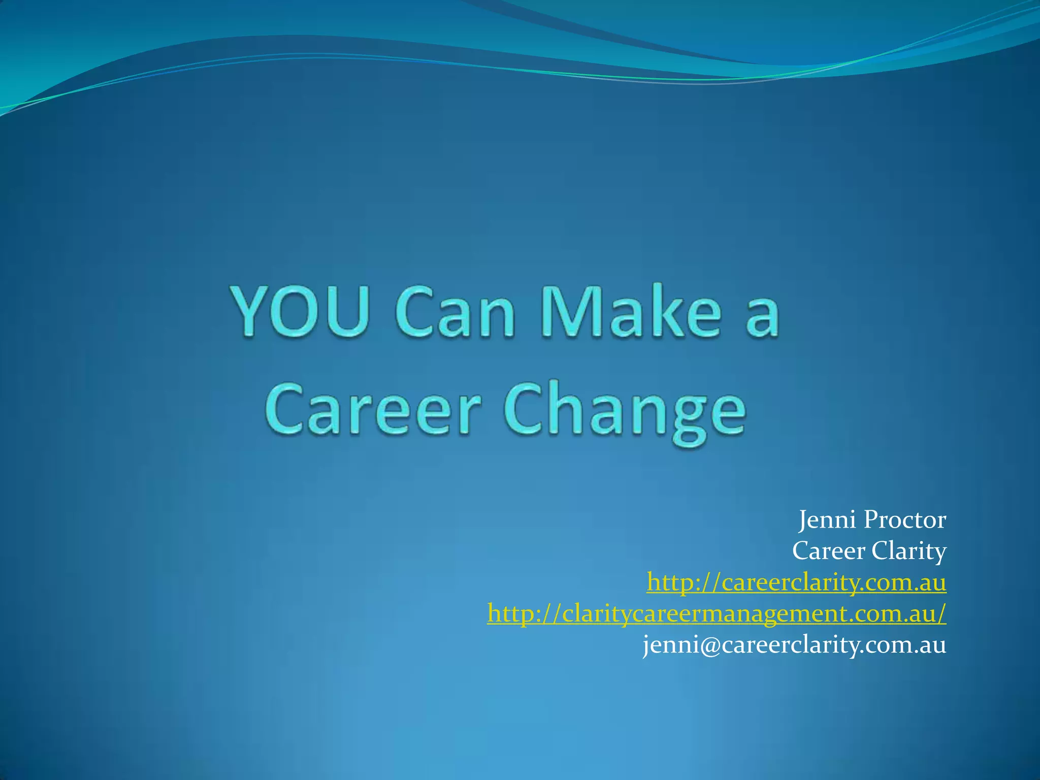 This document discusses challenges and opportunities for career transitions in retirement. It addresses common issues people face as they approach retirement like jobs before retiring, reinventing yourself, and working opportunities after 65. It explores options like working differently through reduced hours, pursuing a new career direction through additional education, or self-employment. Resources are provided on industries with growing jobs for retirees, the 225 best paying jobs, and fastest growing fields. Advice is offered on resumes and cover letters when seeking new roles in retirement.