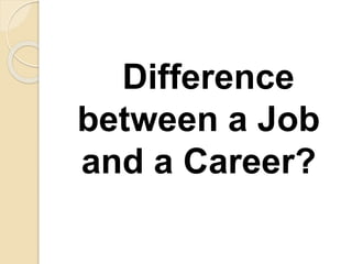 This document outlines an academic and career development seminar for final year students. It discusses the difference between jobs and careers, the career development process including career discovery, and factors considered in recruitment. Interactive sections cover degree subjects, employability skills, and job application procedures. Development strategies suggested include internships, skill building, online presence, communication skills, and participating in student societies. Excuses for lack of career progress are addressed, and the importance of career is discussed in relation to God's purposes.