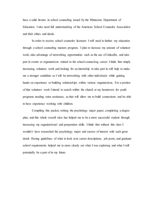 To become licensed, the author plans to obtain a school counseling master's degree. They will also gain experience through volunteering, networking, and internships to strengthen their candidacy for school counseling careers.