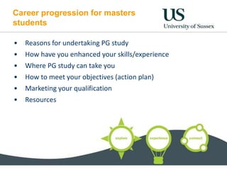 3) Suggestions for how masters students can market their qualifications to employers by articulating the higher-level skills and specialist knowledge they obtained.