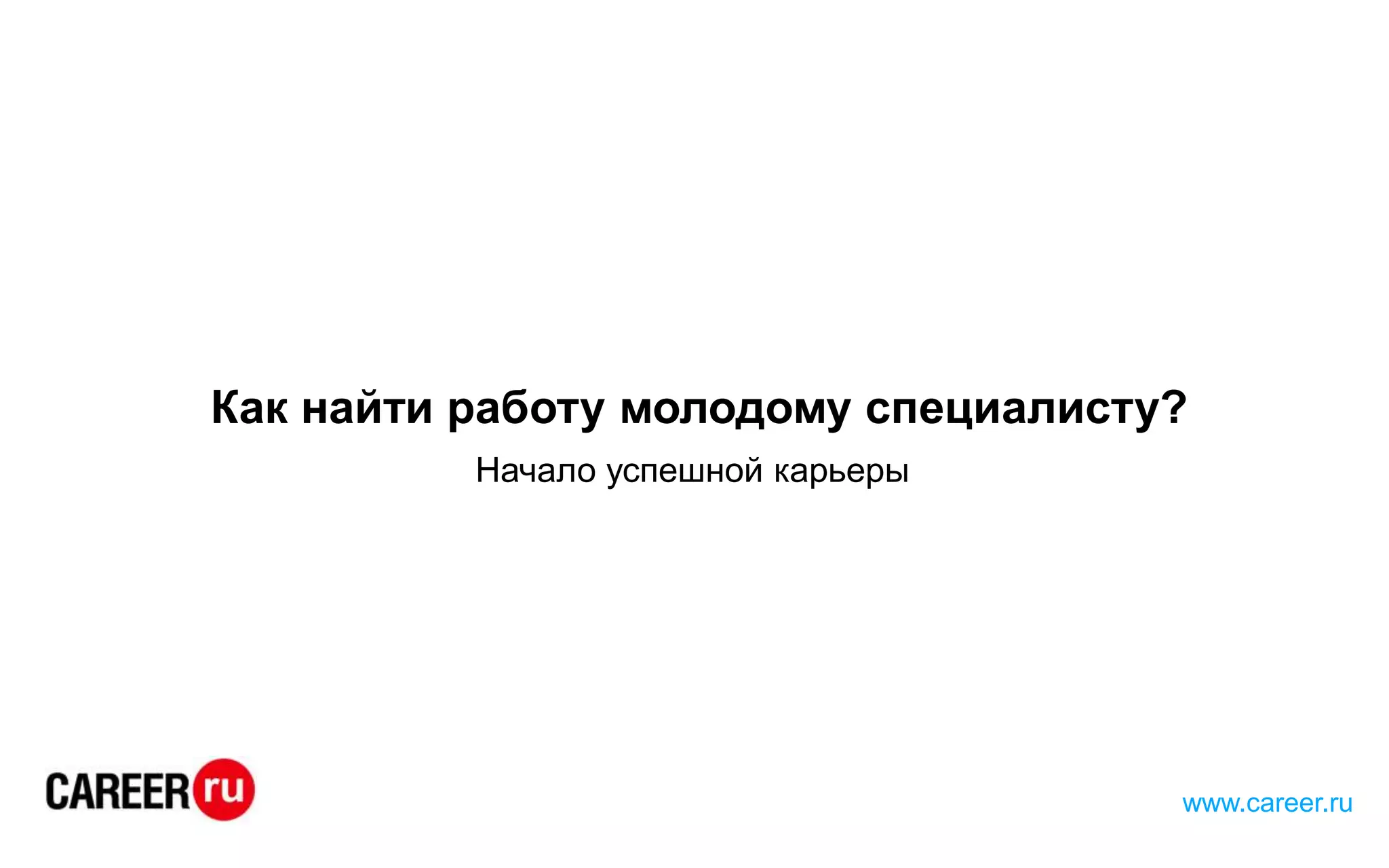 Документ предоставляет рекомендации для молодых специалистов по поиску работы и составлению резюме на сайте career.ru, который предлагает более 18,000 актуальных вакансий. Рассматриваются ключевые аспекты, такие как требования работодателей, уровень конкуренции, ошибки при составлении резюме и оценка подготовки выпускников. Также приведены данные об уровне безработицы и востребованных профессиях в России.