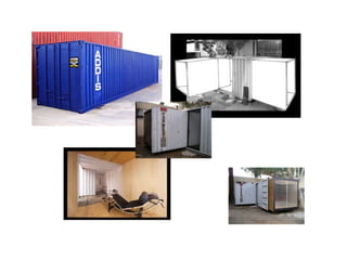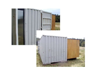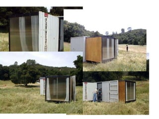 This document discusses a student project to design a prototype mobile home that can be extracted from a shipping container. The prototype home would be approximately 250 square feet and fully mobile like a standard shipping container, able to be transported by truck, train, or ship. The design has the potential to provide disaster relief or low-cost housing globally by making use of surplus shipping containers. The home can be extracted from the container in under five minutes by one person through a system of sliding and rolling rooms on tracks.