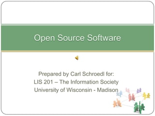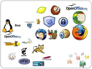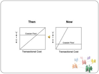 This document provides an overview of key concepts related to open source software including Coasean economic logic, power law distributions, and publish-then-filter models. It also includes statistics on sourceforge downloads and lines of Linux kernel code over time as well as photos and attribution information.