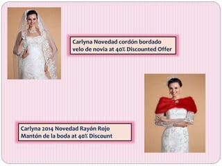 Carlyna offers a new collection of red rayon wedding shawls at a 40% discount. The store is located at 590 Sutter Street, San Francisco, California, USA. Customers can contact them via phone or through their website.