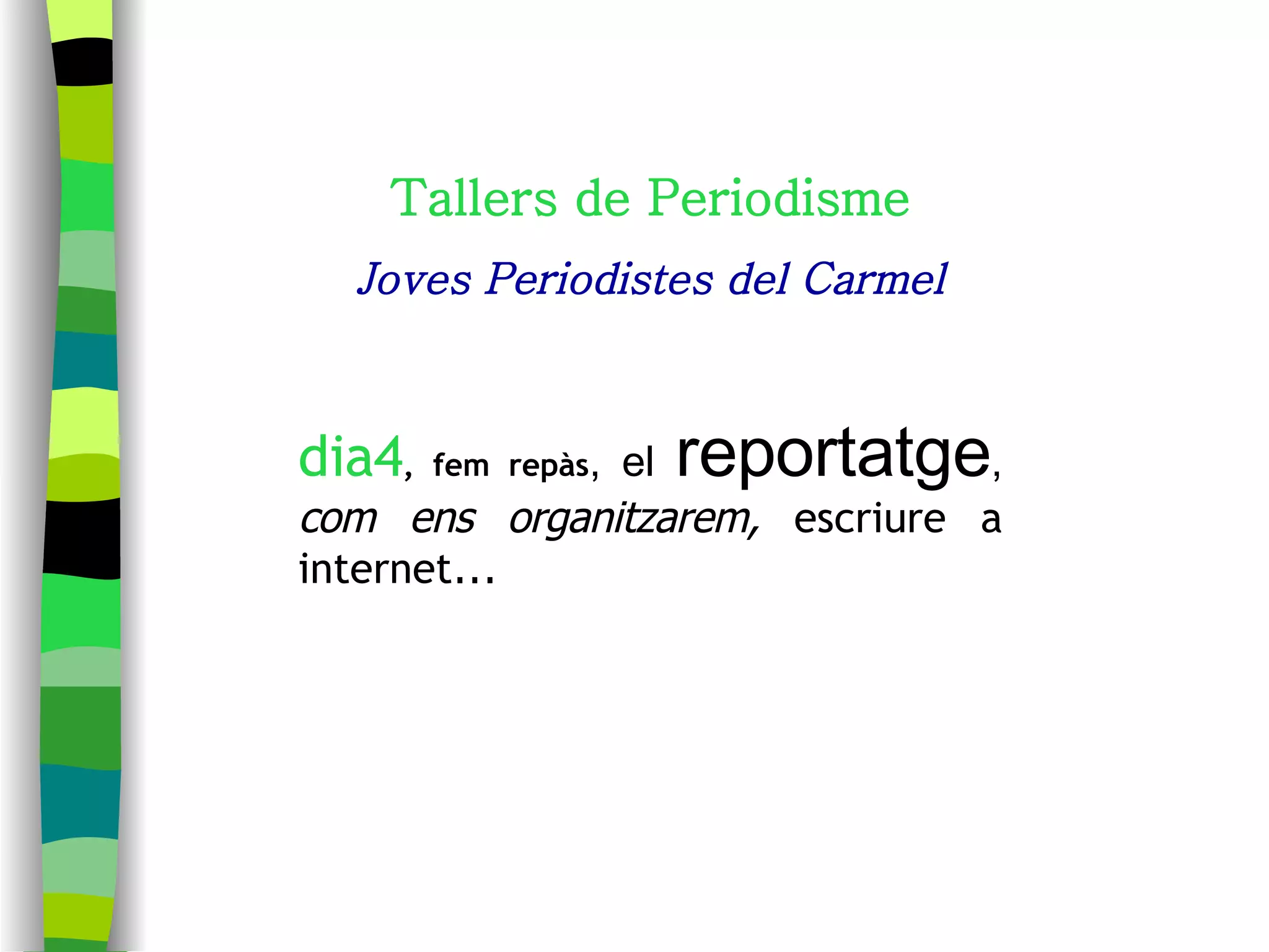 Tallers de PeriodismeJoves Periodistes del Carmel dia 4 , fem repàs , el reportatge , com ens organitzarem, escriure a internet ...