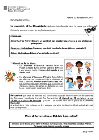 Sa majestat, el Rei Carnestoltes ja ha arribat a l’escola i ens ha manat que al llarg