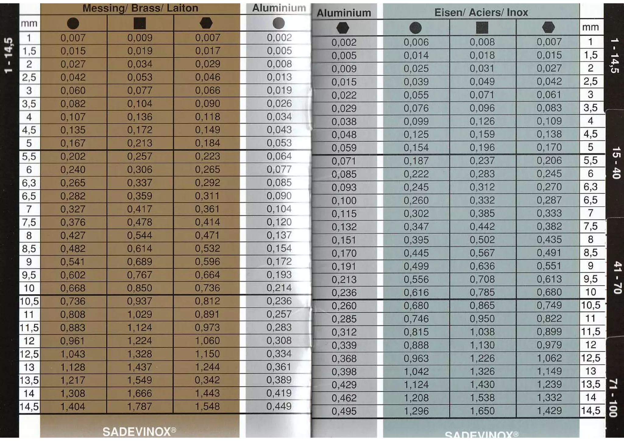 Matieres aciers, laitons, bronze