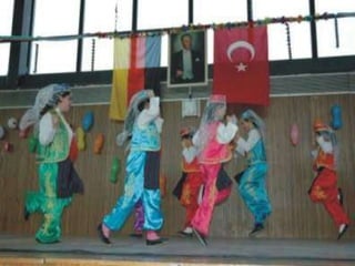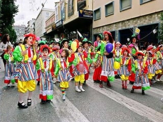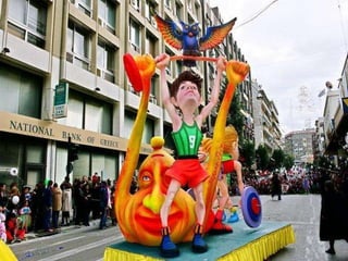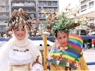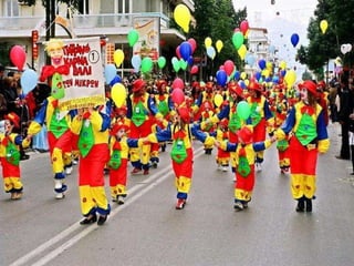 The document provides information about carnivals and festivals in several countries, including Greece, Spain, Italy, and Turkey. It discusses the details of the large and historic Patras Carnival in Greece, the famous Venice Carnival in Italy featuring masks, the Las Fallas festival in Spain with giant statues that are burned, and Turkey's April 23rd Children's Day celebrating sovereignty and dedicated to children.