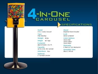 The document promotes Carousel Marketing as a viable opportunity for running a successful home-based business with unlimited earning potential. It highlights the low overhead costs associated with vending machines, including no receivables or additional employee expenses, and emphasizes flexibility in work hours. Contact information is provided for those interested in starting the business.