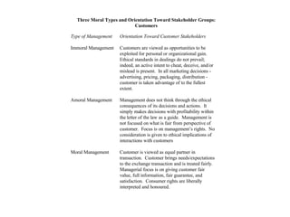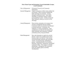 The document describes Carroll's Pyramid of Social Responsibility, which presents four types of responsibilities for businesses: economic, legal, ethical, and philanthropic. It places economic responsibilities at the base as the foundation, with legal, ethical, and philanthropic responsibilities ascending higher up the pyramid. The pyramid provides a framework for understanding a business' evolving responsibilities to society.