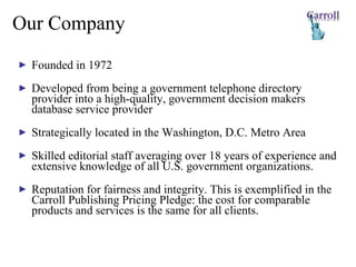 The company provides comprehensive databases and directories of U.S. government decision makers from federal to local levels. It was founded in 1972 and has since developed an extensive online database of over 350,000 current government profiles. The company focuses on accuracy and integrity in profiling structures, programs, budgets, and personnel across all levels of government. It offers customized data integration and real-time search capabilities to help clients identify potential business opportunities.