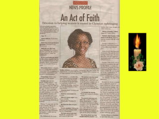 The document is a song that encourages people to "carry your candle" and "go light your world." It says that every person has a light or spirit within them, and calls people to seek out those in darkness, distress, or confusion and hold out their candle so others can see it. The song expresses that by working together as a family to raise our candles and lights to the sky in prayer, we can act as beacons of light in dark times.