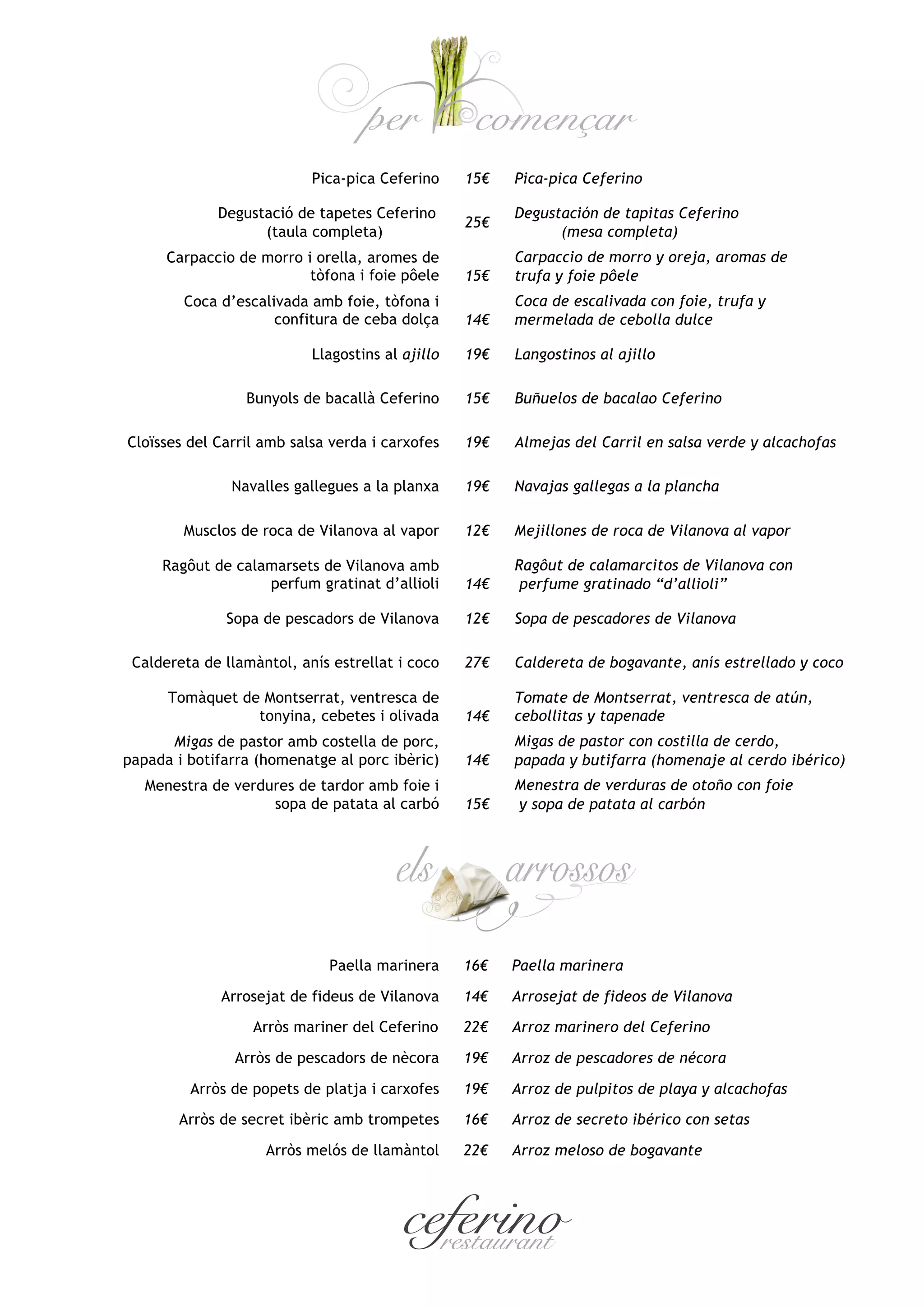 Arròs mariner del Ceferino 22€ Arroz marinero del Ceferino