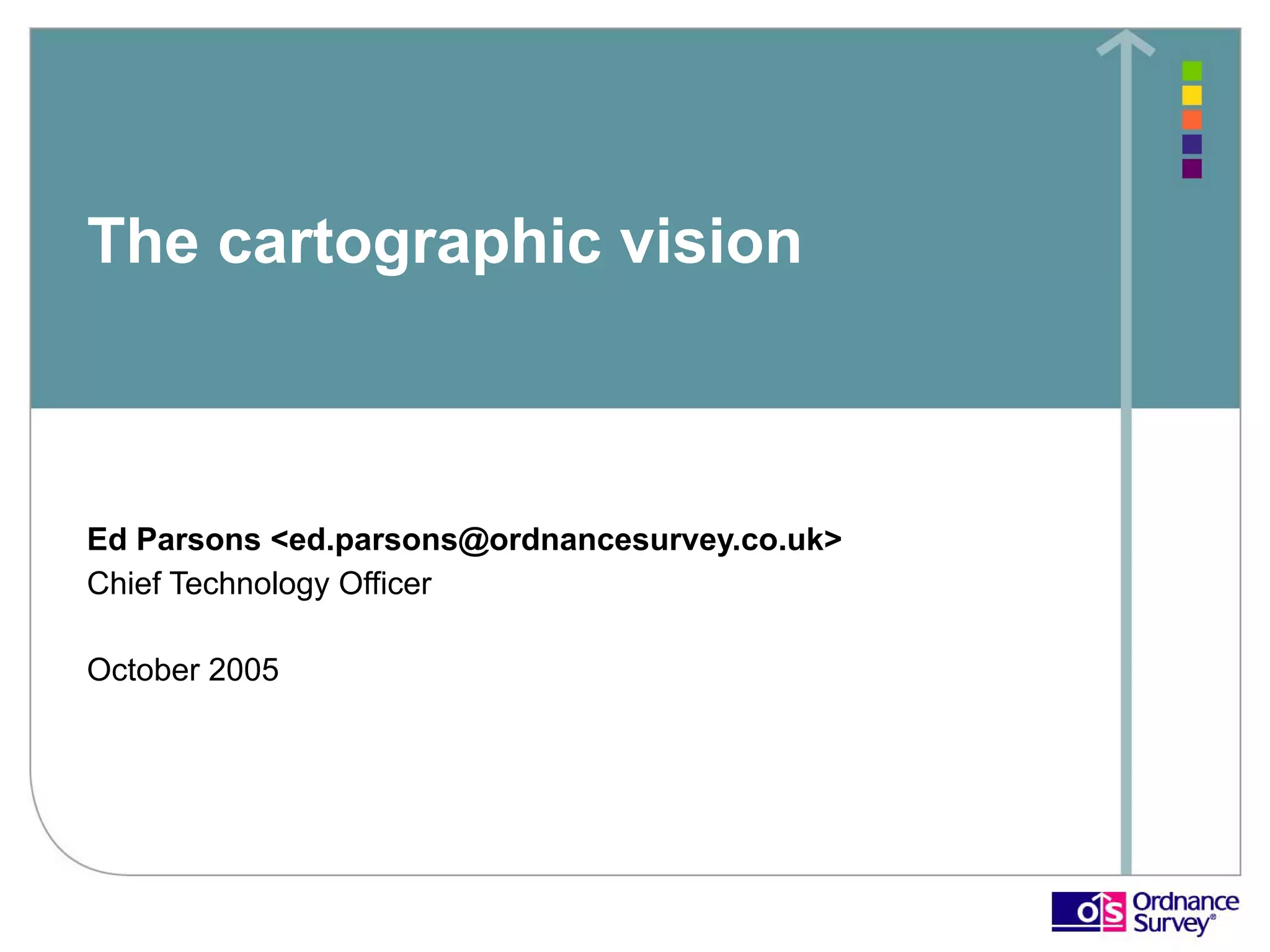 The document discusses Ordnance Survey's history and current practices in cartography, highlighting its position as a market leader in mapping with over 200 years of experience. It emphasizes the transition to database-centric cartography and the significant investment in technology to enhance map production and editing processes. Key points include the need for organizational shifts in thinking to leverage a 'single source of truth' for geographic data and ongoing challenges in automating feature generalization.