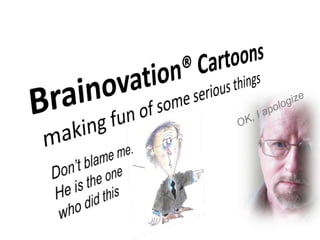 The document contains a collection of comics and quotes by Anders Hemre related to business management topics like portfolio management, information overload, technology returns, best practices, organizational learning, human capital, communities of practice, developing strategy, and idea campaigns. The document also provides biographical information identifying Anders Hemre as an innovation analyst and strategy advisor based in Gothenburg, Sweden.
