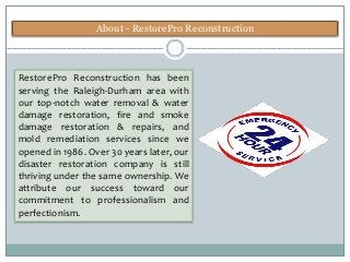 Has a flood damaged your home, office, or basement? Are you searching for flood restoration companies in NC. RestorePro Reconstruction offers premium residential, commercial, and basement flood damage repair 24 hours a day. For more information about RestorePro Reconstruction then call us @ 919-835-0676 or visit us @ https://trustrestorepro.com/cary/flood-damage-repair/