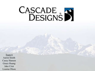 Team 6 presented recommendations for Cascade Designs, a company founded in 1972 that produces hiking and backpacking equipment out of their Seattle location. They analyzed Cascade Designs' current facility layout and lean principles, noting opportunities to create a value stream map, implement 5S more fully, standardize processes, and redesign the plant layout using lean techniques learned in an operations management course. The presentation concluded that Cascade Designs could increase profitability and efficiency by adopting additional lean principles.