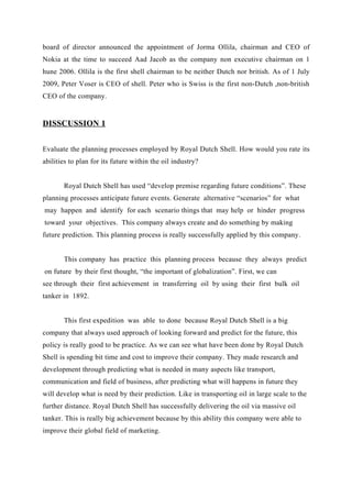 Royal Dutch Shell has a long history of strategic planning that has enabled it to anticipate changes in the oil industry and adapt accordingly. The company was founded in the late 19th century by the Samuel brothers who pioneered oil transportation by sea. Through mergers with Royal Dutch Petroleum and other acquisitions, Shell became a global oil giant by the 1920s. However, it faced challenges during the 1930s from nationalizations. More recently, Shell has expanded into alternative fuels and renewable energy to prepare for a future with less dependence on oil. Alternative fuel sources like biomass and hybrid vehicles now present a potential threat to Shell's core oil business if adopted widely.