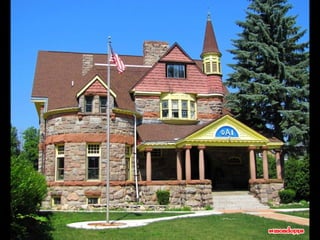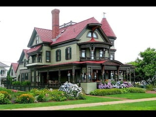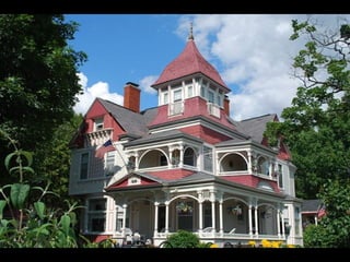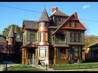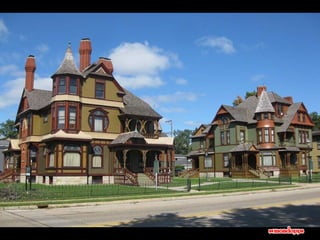 This document discusses notable cities in the United States that developed or were rebuilt during the Victorian era, including Boston, New York City, Chicago, and San Francisco. It also examines debates around which neighborhoods contain the largest surviving examples of Victorian architecture, mentioning that Cabbagetown in Toronto contains the largest and best preserved collection of Victorian-era industrial architecture in North America, while the South End of Boston and Old Louisville in Kentucky also claim to have the largest Victorian neighborhoods in the country.