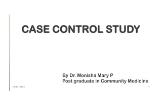 The document outlines the fundamentals of case-control studies in epidemiology, including their design, distinctive features, and basic steps such as selection of cases and controls, matching, and measurement of exposure. It discusses potential biases like recall and selection bias and highlights the advantages of conducting case-control studies, such as their efficiency and suitability for rare diseases. Additionally, the document covers the calculation and interpretation of odds ratios to determine associations between exposures and diseases.