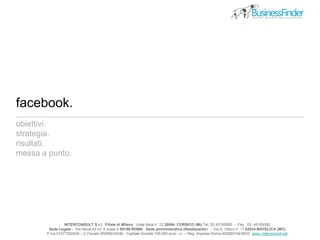 Interconsult S.r.l. ha registrato un incremento significativo dell'importanza di Facebook per la diffusione di notizie, raddoppiando le visite da questo canale e raggiungendo oltre 30.000 fan. La strategia implementata ha incluso la creazione di landing page, la selezione di notizie e la moderazione della community. Inoltre, Berlusconi ha utilizzato Facebook per interagire con gli elettori e annunciare riforme, ottenendo un'ampia copertura mediatica.