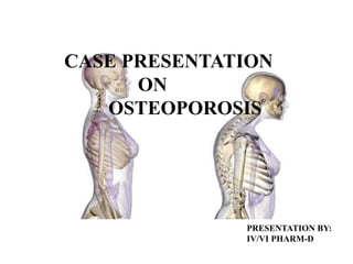 A 75-year-old female patient presented with severe lower back pain and a stooped posture. Diagnostic tests revealed lumbar vertebral collapse and reduced calcium levels. She was diagnosed with osteoporosis based on her symptoms, physical examination findings, and test results. Her treatment plan included calcium and vitamin D supplements to strengthen bones, alendronate to decrease bone resorption, and counseling on lifestyle modifications like daily sunlight exposure and diet changes.