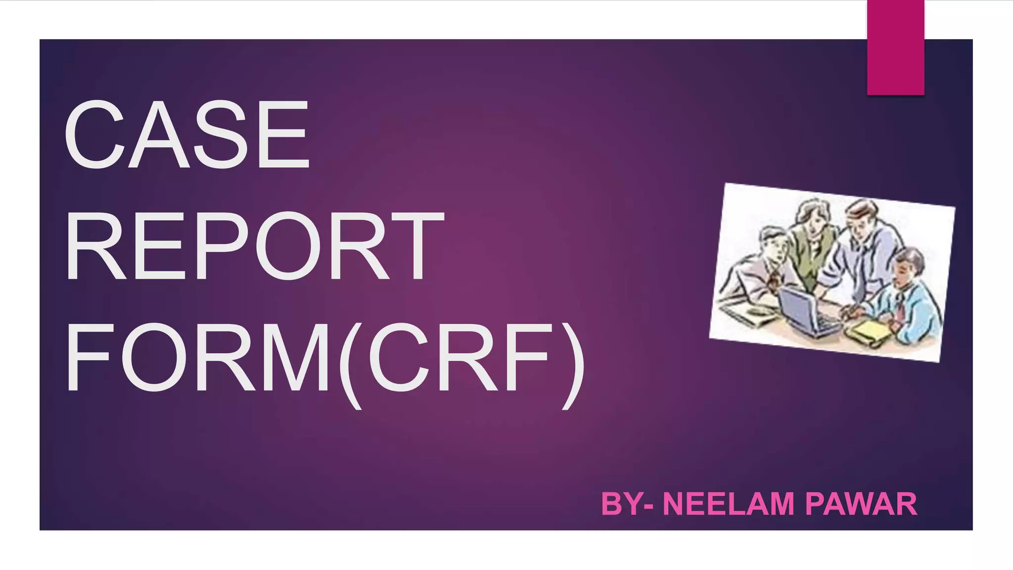 The Case Report Form (CRF) is a critical document in clinical trials, designed to capture protocol-required information for each trial subject, facilitating data collection, management, and analysis. It can be in paper or electronic form, with electronic CRFs offering advantages like real-time data handling and improved security. Guidelines for CRF completion emphasize accuracy, consistency, and proper management to ensure compliance and effective monitoring of trial data.