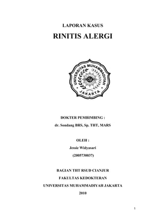 Laporan kasus ini membahas tentang seorang perempuan berusia 19 tahun dengan keluhan utama hidung meler sejak 6 tahun. Berdasarkan pemeriksaan fisik didiagnosis dengan rhinitis alergi. Penatalaksanaan yang diberikan meliputi penghindaran alergen, olah raga, mandi air hangat, menggunakan masker, serta obat antibiotik, antihistamin, dan kortikosteroid.