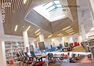 This document provides summaries for 9 case studies of university and hospital facility projects. The case studies focused on creating new and renovated social learning spaces including student hubs, computer clusters, seminar rooms, meeting rooms, auditoriums, libraries, cancer care facilities, research areas, and common rooms. The projects aimed to enhance the user experience through welcoming, vibrant, and technology-rich multi-purpose study, collaboration, relaxation and social spaces.