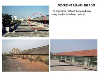 The document discusses four case studies on the adaptive reuse of historic buildings and structures based on different schools of thought. It focuses on the restoration of the Bhaudaji Lad Museum in Mumbai and the adaptive reuse of traditional pol houses in Ahmedabad, Gujarat. The pol houses showcase the rich culture and traditions of the past but now face issues due to modernization. The case study proposes sensitively adapting the structures for new uses while preserving original fabric to promote heritage conservation and generate funds for maintenance. This allows the buildings to be sustainably reused in a way that benefits both inhabitants and preservation of cultural heritage.