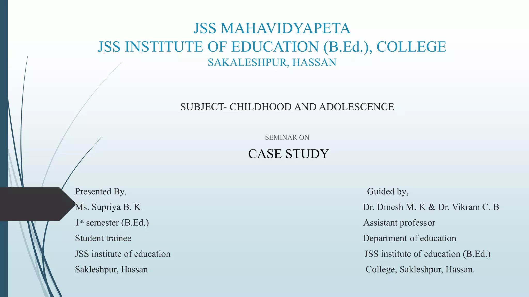 The document discusses the case study method of qualitative research. It defines a case study as an in-depth analysis of an individual, group, or event. The case study method involves two stages: diagnosis, where information is collected to analyze the causes of a problem, and treatment, where the clinician tries to modify behavior and the environment. Key steps in a case study include identifying the problem, collecting and analyzing data from multiple sources, identifying causes, and suggesting and implementing remedial measures. While time-consuming, case studies provide comprehensive understanding of individual behavior in context.