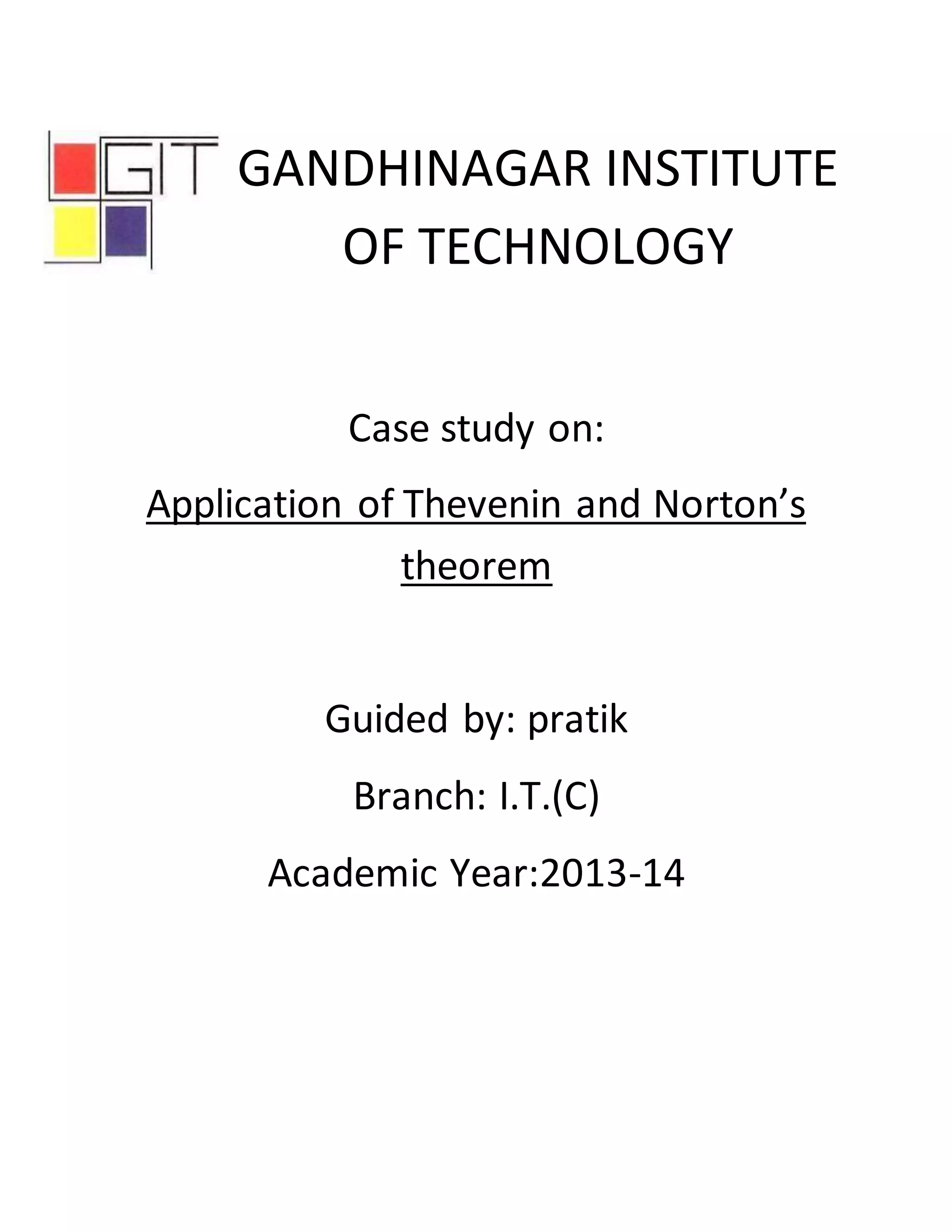 This document discusses the applications of Thevenin's and Norton's theorems. Thevenin's theorem states that any linear electrical network can be reduced to an equivalent circuit with a voltage source in series with a resistor. This is useful when a load resistor in a complex circuit needs to be changed. Norton's theorem states that any linear network can be represented by a current source in parallel with a resistor. Both theorems allow simplifying complex circuits for analysis. Thevenin's theorem is applied to power systems and circuits where the load resistance varies. Norton's theorem allows focusing on part of a circuit by reducing the rest to a simple equivalent.