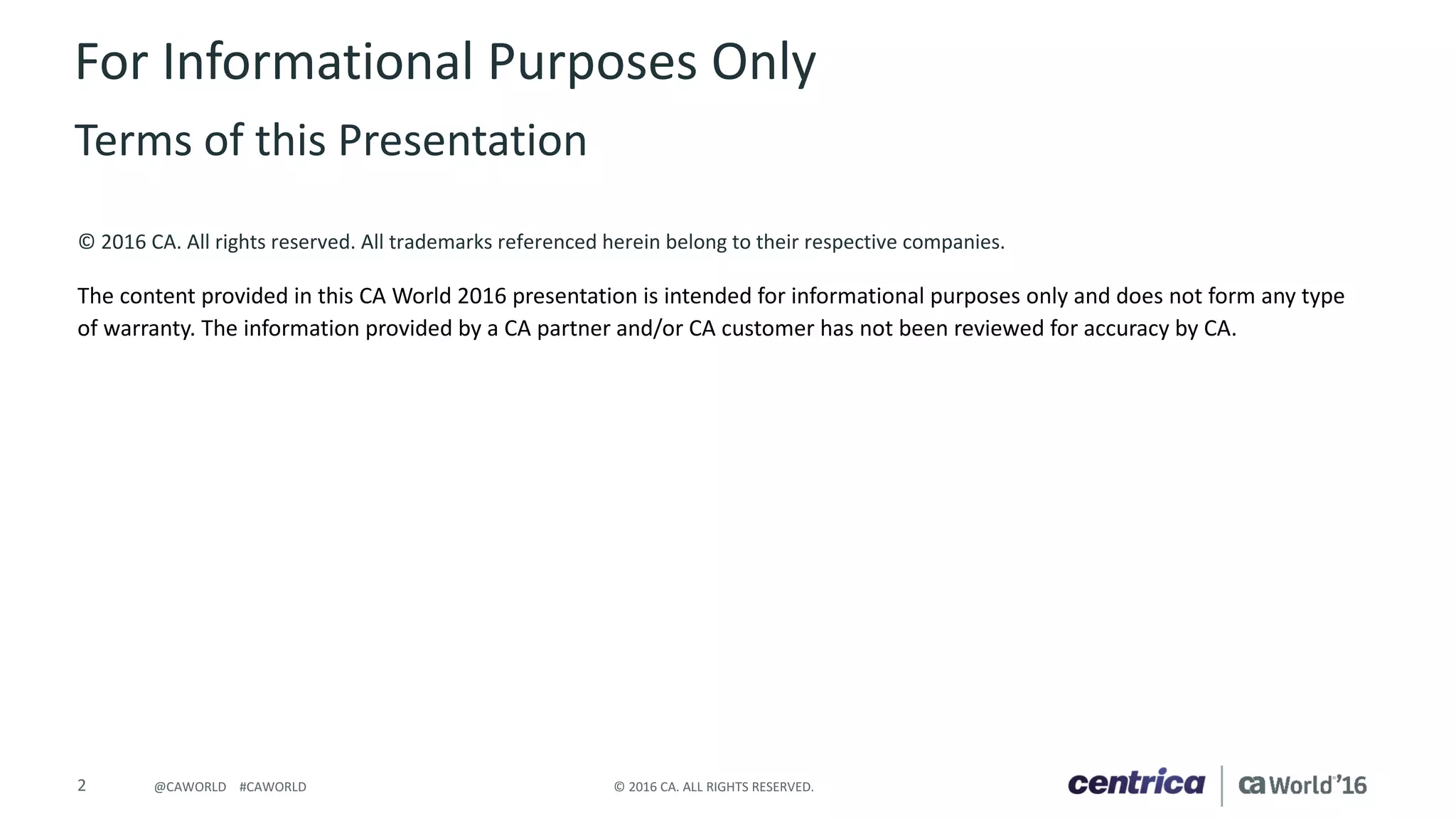 Centrica uses CA Application Performance Management (CA APM) to monitor transactions on their SAP CRM system which handles 20 million interactions daily across 30 call centers. CA APM provides visibility into transactions to reduce errors from 500 per day to under 200 and improve performance of key steps. It also monitors Centrica's smart meter infrastructure during the rollout of 2.8 million smart meters. CA APM dashboards help Centrica identify issues and resolve incidents quickly to improve the customer experience.