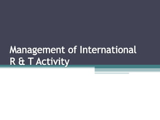 The document outlines the structure and activities of Daimler-Benz's Research and Technology (R&T) department, including the company's historical background and its evolution through mergers. The strategic focus on research and technology emphasizes collaboration and integration across various business units while addressing challenges related to project management and global operations. It details the company’s R&T organization, project types, financing, international research sites, and the importance of technology monitoring and partnerships with universities and research institutions.