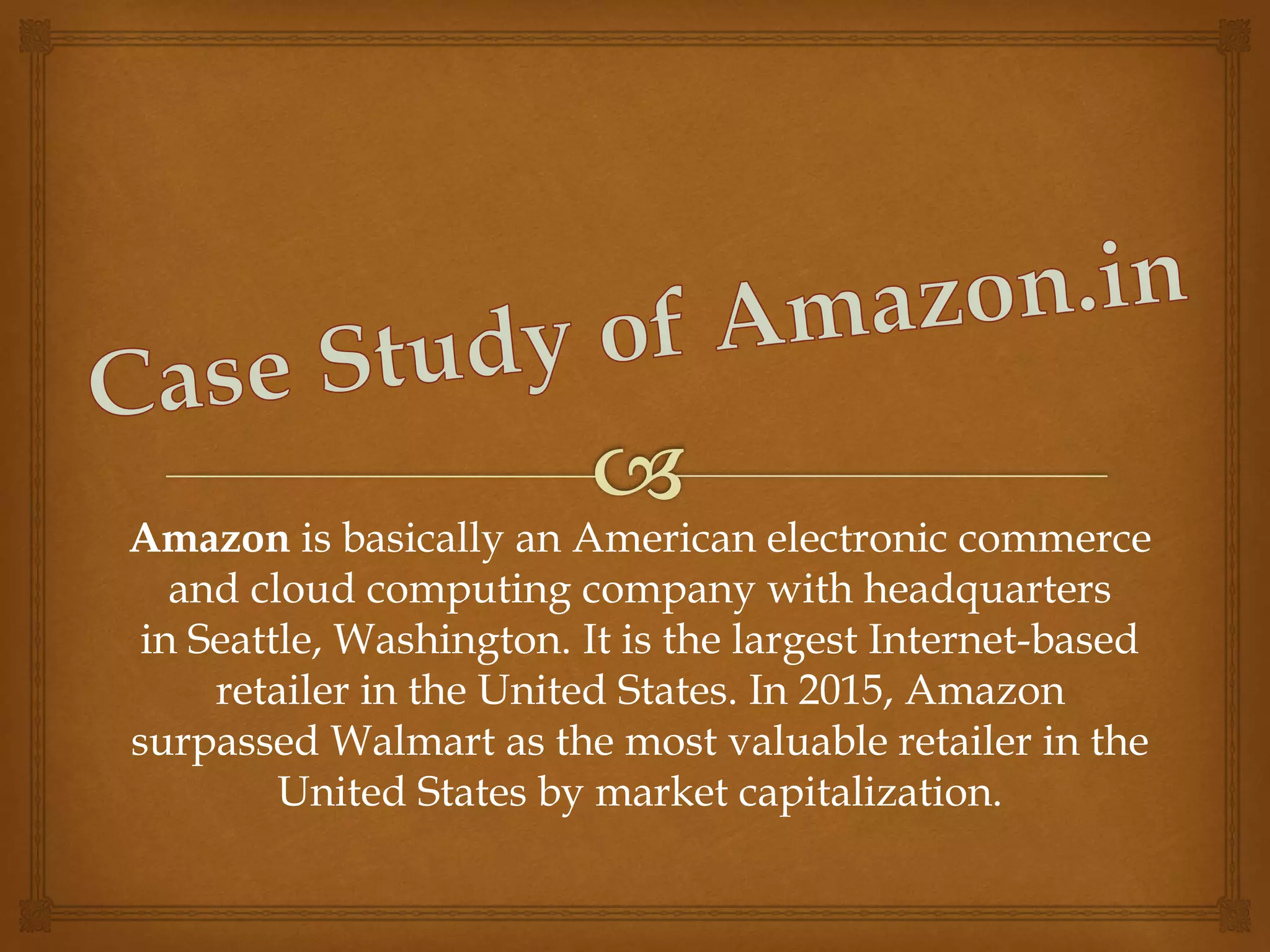 Amazon is a major American e-commerce and cloud computing company based in Seattle, known for being the largest internet retailer in the U.S. The company's investments in delivery services, such as Amazon Fresh and Prime Pantry, alongside technology like Amazon Dash and Fire TV, enhance its competitive standing against rivals like Flipkart and Snapdeal in India. Additionally, Amazon faces challenges in India including logistics issues and competition dynamics, yet it rapidly captures market share while continuing to innovate.