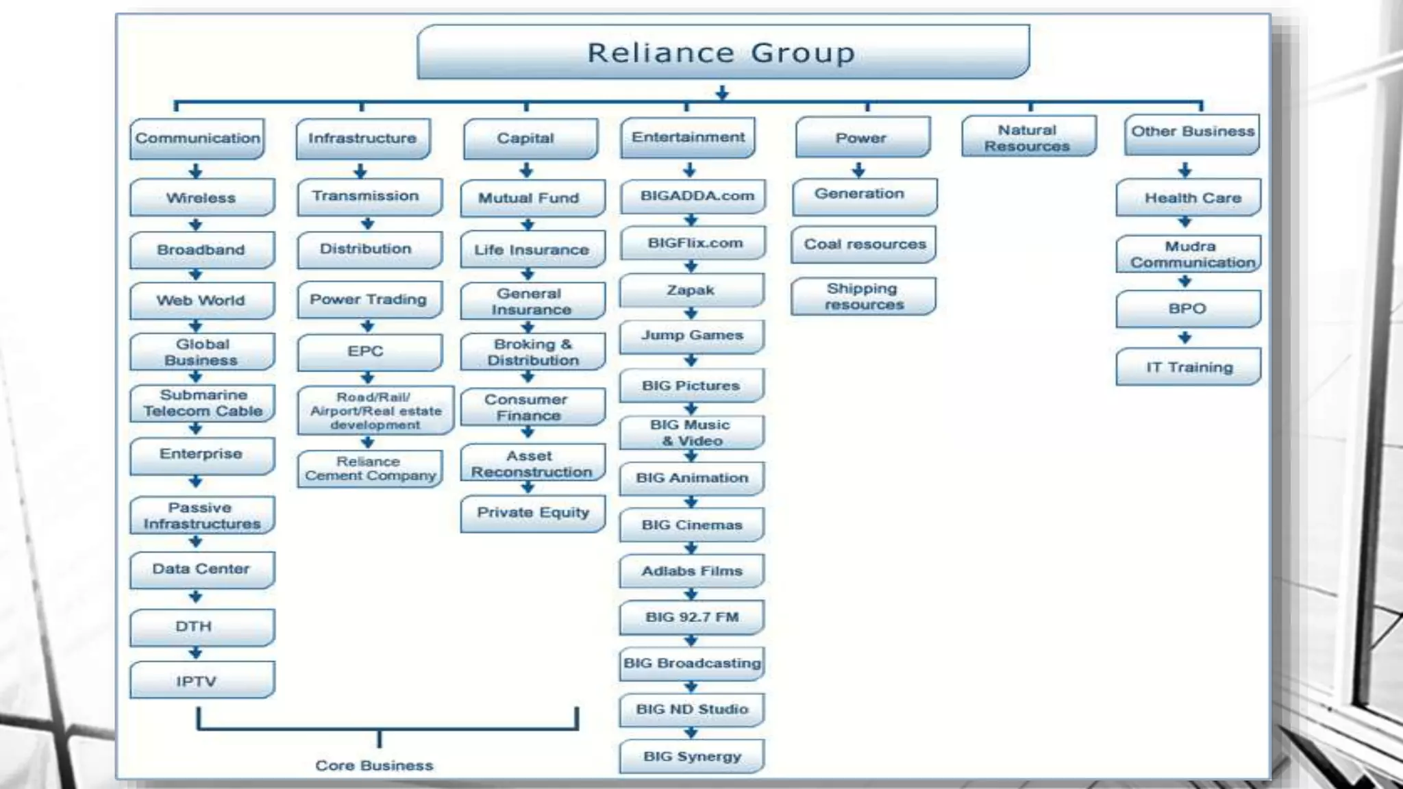 Reliance Industries, founded in 1966 by Dhirubhai H. Ambani, has grown from a small textile manufacturer to India's largest private sector enterprise, operating in petrochemicals, refining, and oil and gas. The management functions studied include planning, organizing, leading, and controlling, which have been effectively utilized to achieve organizational goals over time. Key milestones in Reliance's history include its IPO in 1977, market expansion in textiles, entry into telecom, and the launch of Jio in 2016.