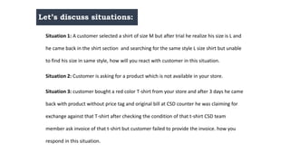 1. A customer wants to exchange a shirt in a different size but the size is not available.