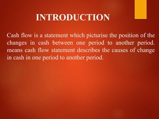 1. Cash flow statements describe changes in cash between periods by showing cash inflows and outflows from operating, investing, and financing activities.