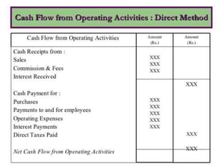 The document discusses cash flow statements, including:
