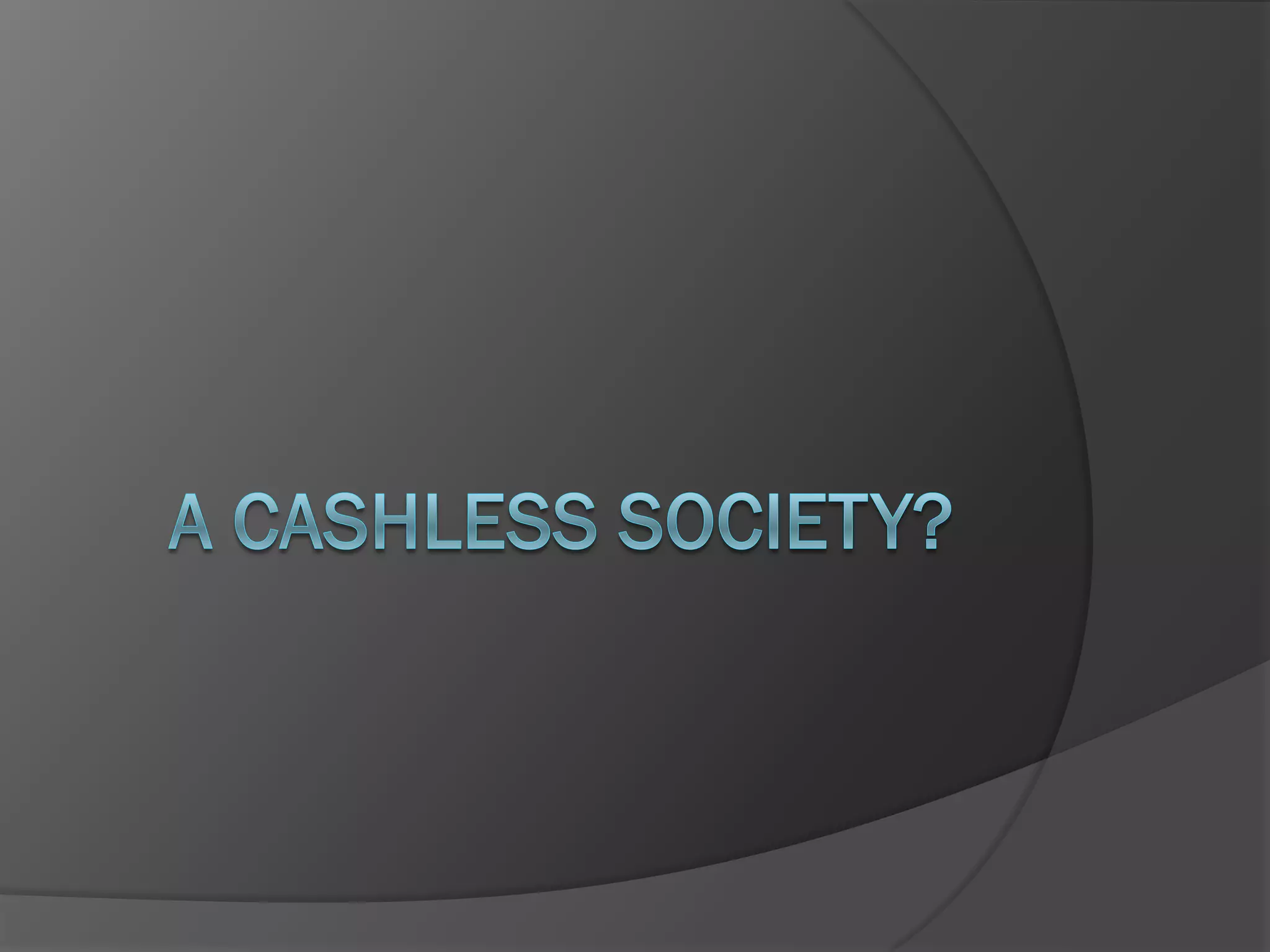 A cashless society is one where all transactions are electronic and there is no physical paper money or coins in circulation. It relies on electronic payment systems like EFT and digital payment methods using microchips, smart cards, fingerprints or retinal scans. While a cashless system offers security benefits like transaction records and fewer errors, it also presents security risks around privacy, potential for new cyber crimes, and difficulties for those reliant on cash. The impacts of transitioning to a fully cashless system would be significant and require education as well as addressing economic and acceptance issues.
