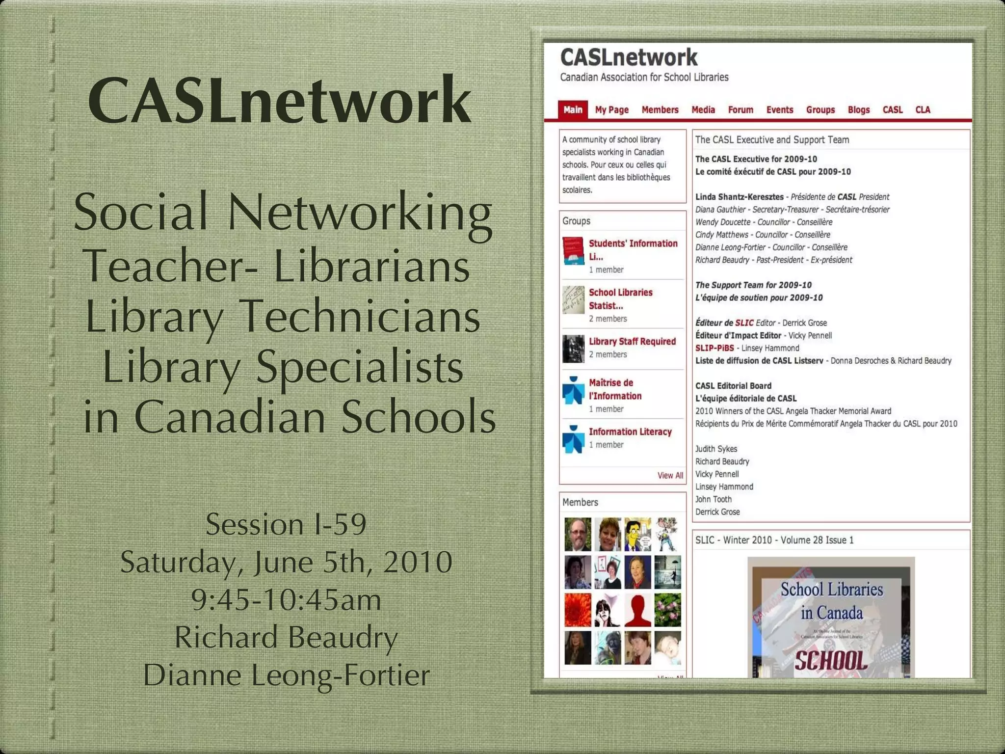 The document discusses the importance of social networking for teacher librarians and library technicians in Canadian schools, highlighting its role in building professional relationships and sharing resources. It outlines the emergence of online communities and tools that facilitate collaboration and learning, as well as the inception and objectives of the CASLNetwork, which aims to provide a national professional network for school library specialists. Additionally, it addresses challenges related to time management, privacy, and accessing professional development in the context of web 2.0 technologies.