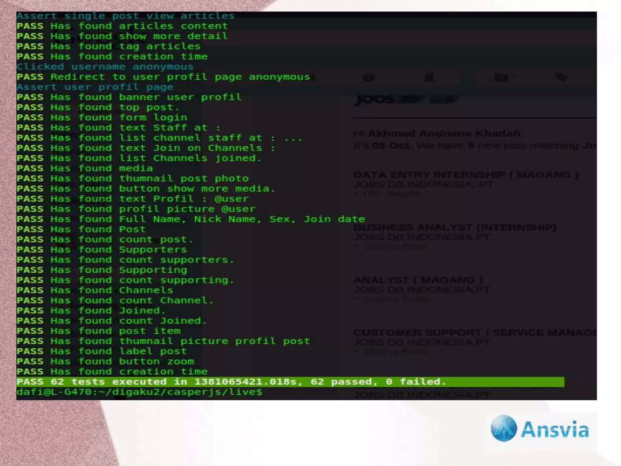CasperJS is a headless WebKit framework that uses a convenient asynchronous JavaScript API to capture screenshots, fill out and submit forms, and test web pages. It builds on PhantomJS, a headless WebKit browser with a JavaScript API that provides fast support for DOM handling, CSS selectors, JSON, Canvas, and SVG. CasperJS makes it easier and more powerful to scrape and test web pages than using plain JavaScript alone.