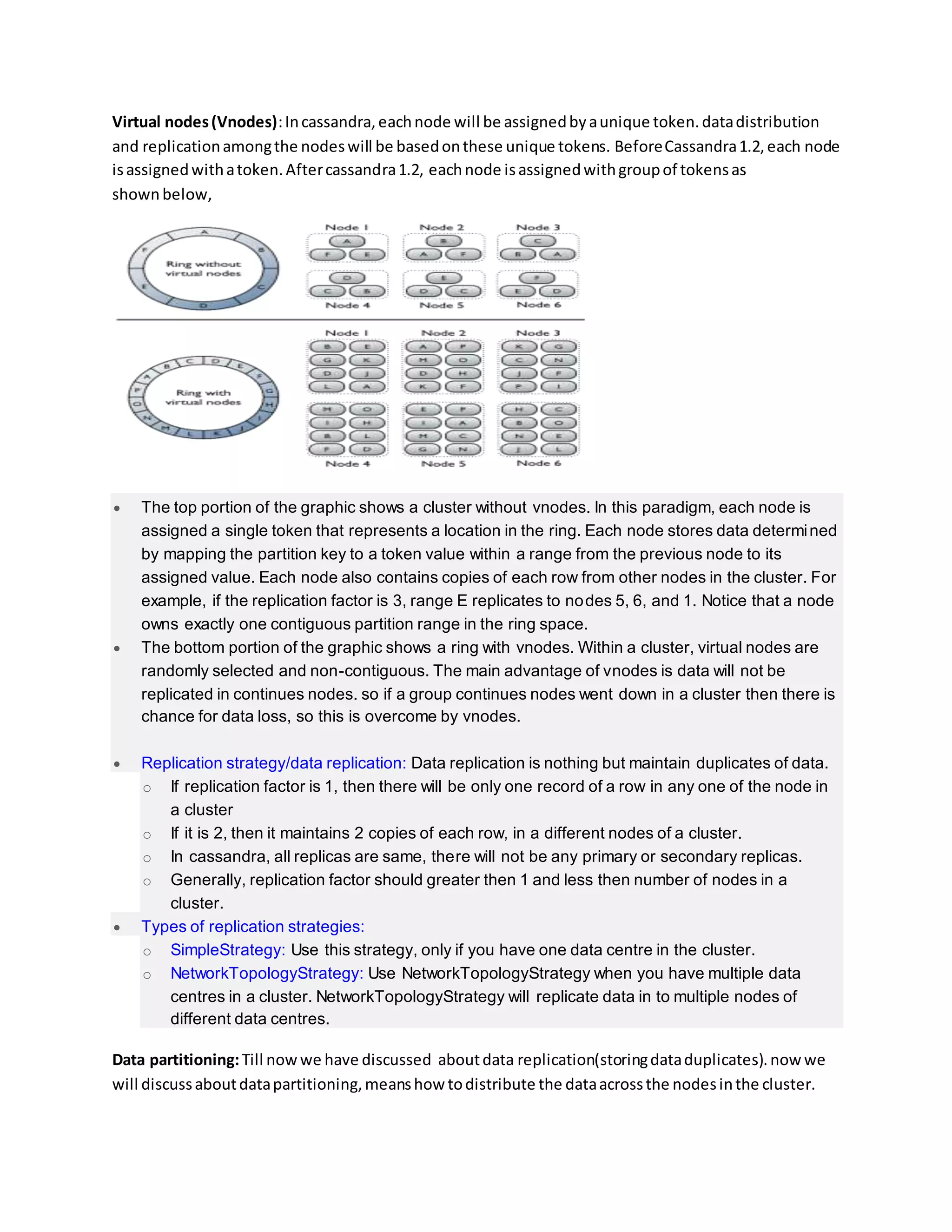 Cassandra is a distributed database designed without single points of failure. It addresses this by employing a peer-to-peer architecture where data is distributed across homogeneous nodes. All nodes are equal - there is no master or slave. Nodes exchange state information using a gossip protocol to maintain awareness of the cluster. Clients can send read or write requests to any node, which will coordinate with other nodes as needed to fulfill the request based on how data is partitioned.