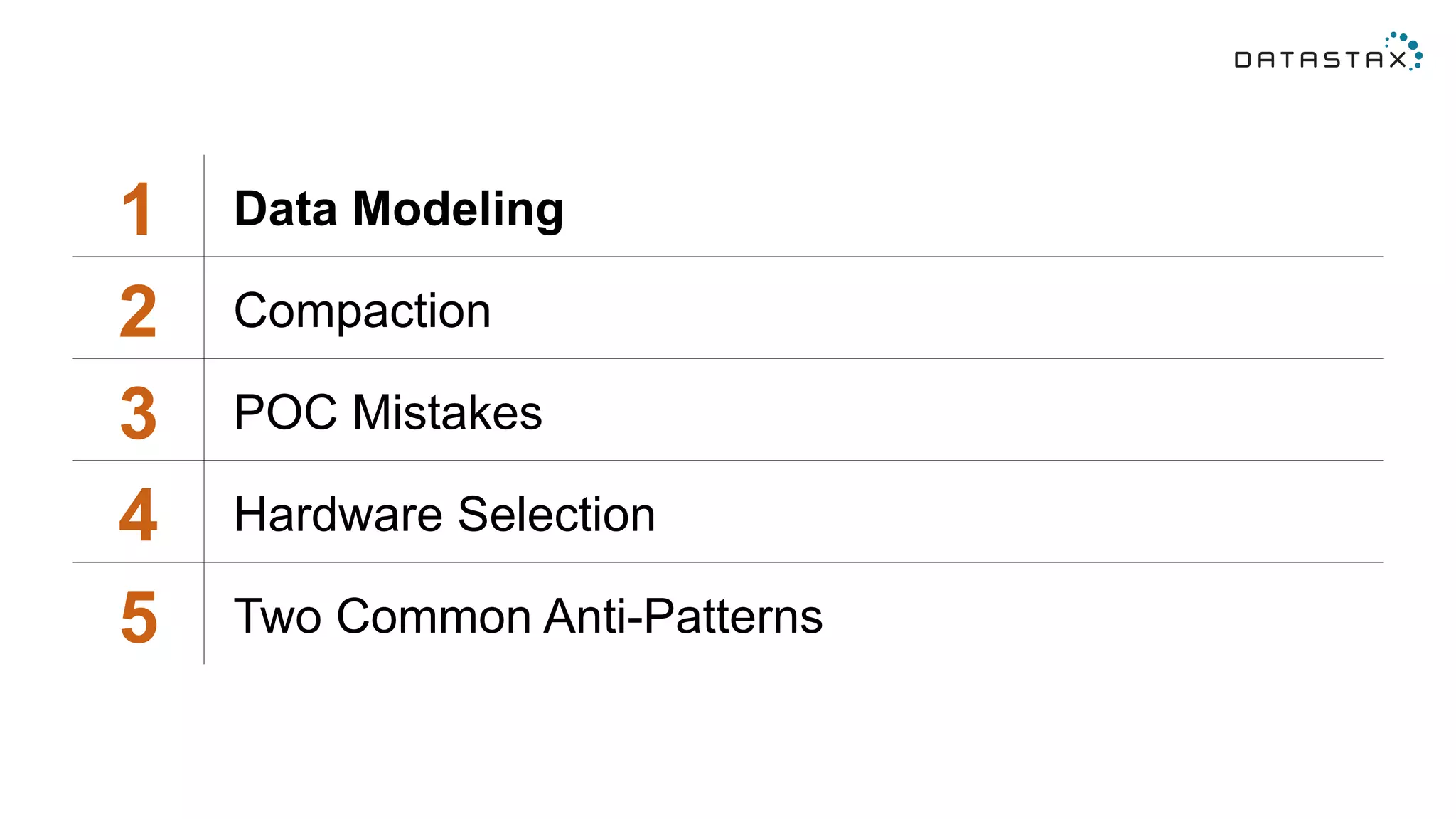 The document provides 5 tips for using Cassandra and DSE: 1) Data modeling best practices to avoid secondary indexes, 2) Understanding compaction choices like size-tiered, leveled, and date-tiered and their use cases, 3) Common mistakes in proofs-of-concept like testing on different hardware and empty nodes, 4) Hardware recommendations like using moderate sized nodes with SSDs, and 5) Anti-patterns like loading large batches of data and modeling queues with improper partitioning.